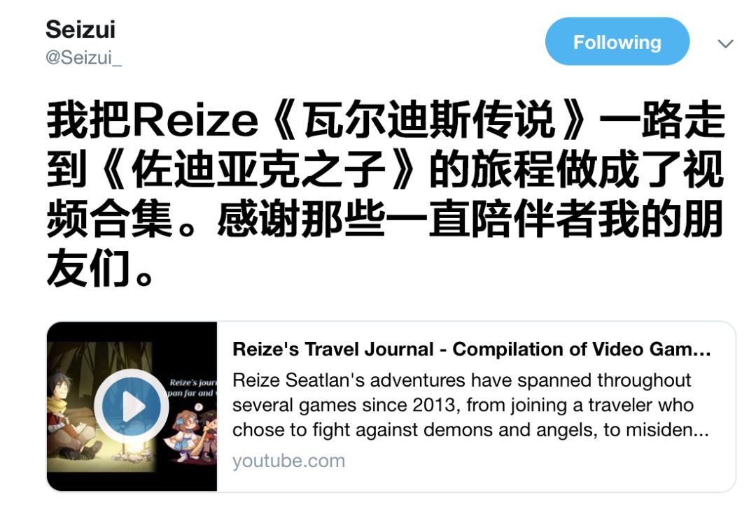 他在自己资助游戏这件事没有遮遮掩掩,还在推特上放出了一个叫做《Reize的冒险》的短片,记录了一下所有Reize出场过的游戏。