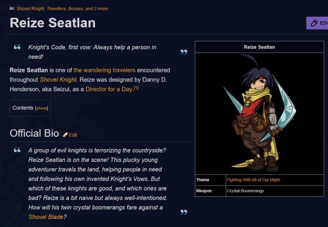 在近年来一些热门独立游戏里,玩家经常能看到同一个人名出现在游戏中。此人名叫Reize Seatlan,一个拿着奇怪武器,背着披风,是个盗贼冒险家。