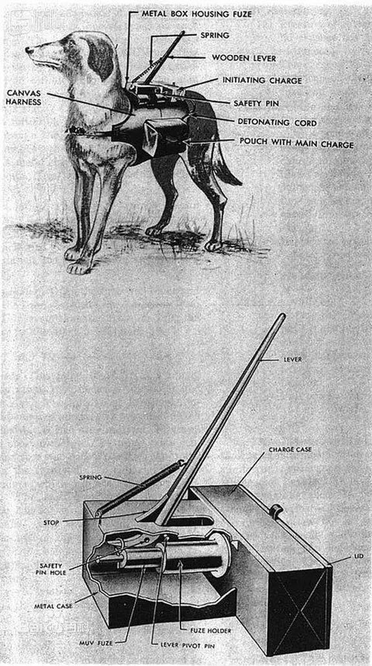 其二、应用:这些反坦克犬训练完毕后,每100~120条编成一个反坦克犬连发往战场。