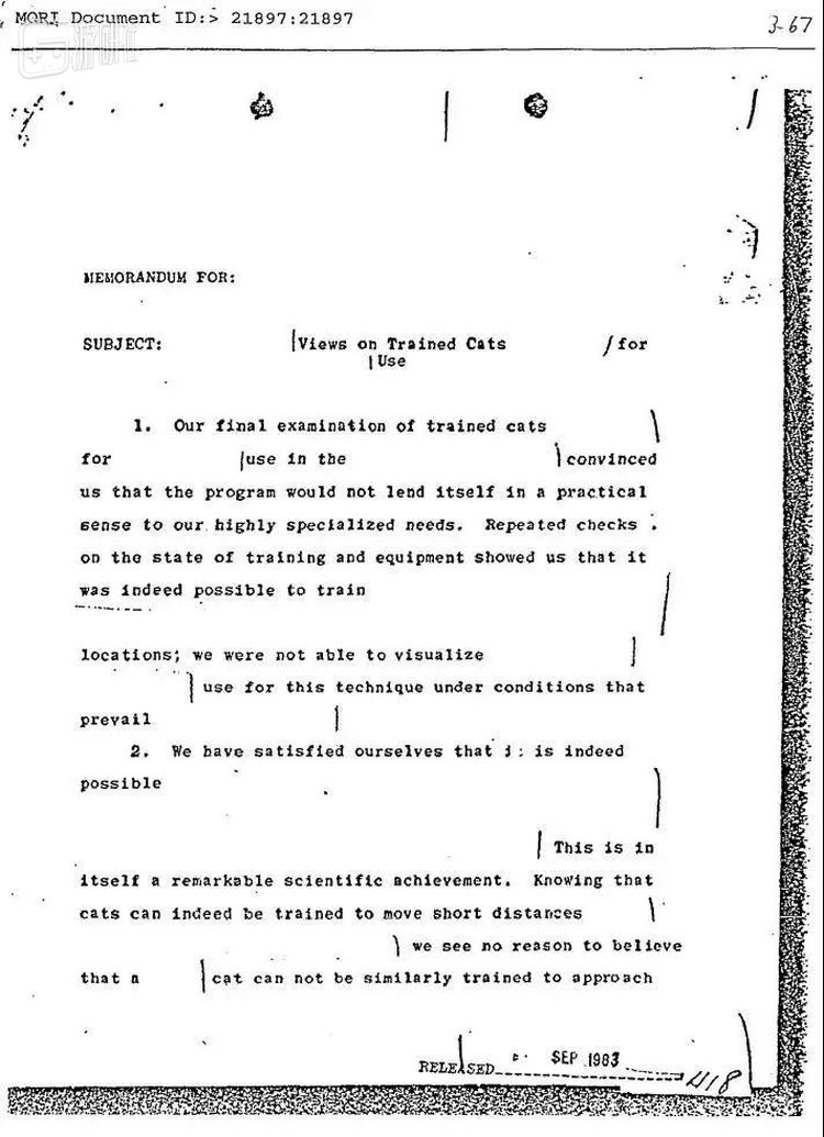 《对于受训猫的使用看法》美国中央情报局(CIA)资料(1967年3月)
