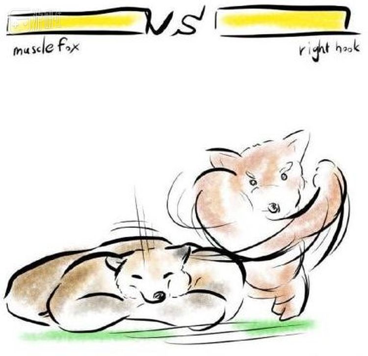 实际比较下来,“麒麟臂狐狸”不屑一顾的傲慢姿态确实让它在气势上加分不少,每每两方出现在同一个场景之中,更为激进的“右勾拳柴犬”总是占不到上风: