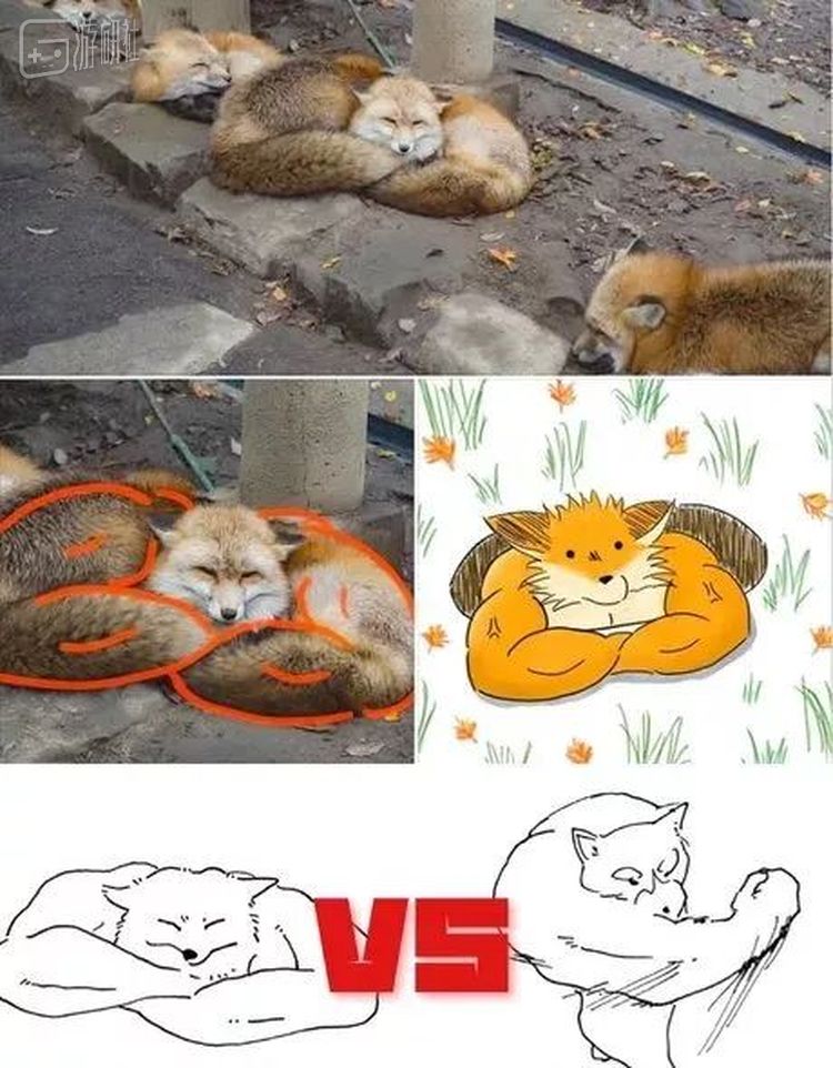 这是被热心网友挖出的一组依偎在一起的狐狸,不过他们在干什么已经不重要了,重要的是,这个场景可以让人轻松地把两只狐狸身躯幻视成麒麟臂。