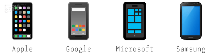 但是,并非所有的 emoji 设计都会按照“消除歧义、提高辨识度”这样的目标来设计。对于各个厂商而言,自家 emoji 造型所承载的远不止设计本身。因此我们得以看到不同厂商的不同手机📱emoji,而且都保持着最新产品的样子。