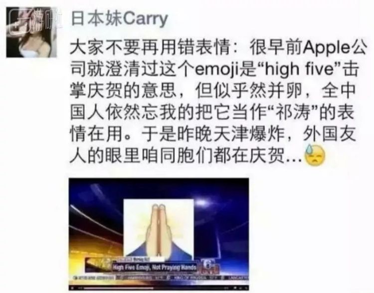 这样一来,世界上不同国家和地区的人就可以用这个 emoji 来表达各自文化语境下的含义了。尽管双手合十的具体场合有所不同,但都表达类似“诚恳”或“祝福”的含义,不至于像误读为“击掌”一样引起这样严重的歧义。