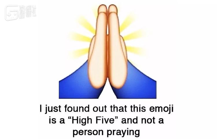 外国网友制作的梗图(meme):“我才知道这个 emoji 是‘击掌’而不是祈祷的人”(knowyourmeme.com)