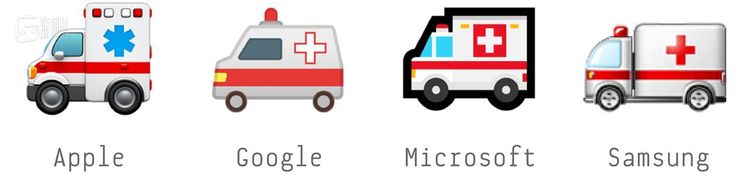 下:各平台的🚑设计——Apple 使用了代表医疗救援的“生命之星”,而其他大部分平台均为红十字。(Emojipedia,笔者制图)
