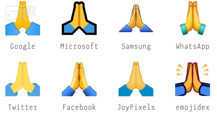 在 Unicode 标准中,🙏的描述为“手掌合在一起的人”(Person with folded hands);而 Apple 则描述为“双手合十”(Hands Pressed Together),仅代表一个手势而不体现面部表情。2015 年,Apple 去掉了放射状光线;在当前流通的其他各平台上,这个 emoji 也都采用了和 Apple 一致的设计。