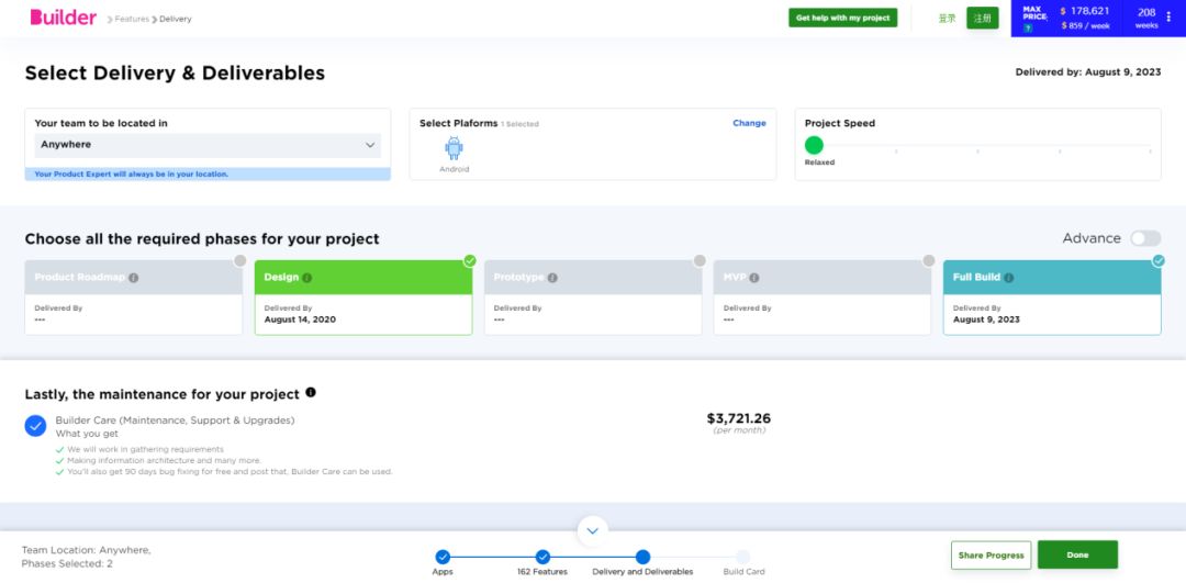 这些功能在供你选择的同时也是明码标价的。在你选择完成后,点击NEXT,网页将会跳转到下单页面。在这里,你将会看到你所定制的程序开发完成时间,以及价格。