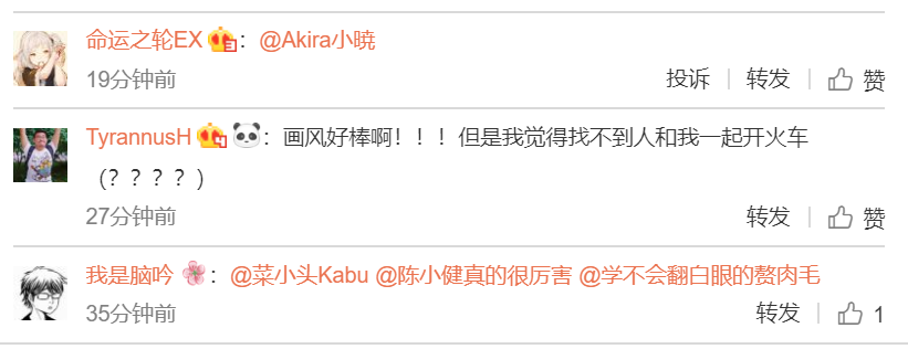 基本上,我们微博一旦发布多人合作类游戏的资讯,评论区就会看到整齐划一“找朋友”的姿势。比如在《一起开火车!》发售前,我们曾发过预告片的微博,评论区里的网友们纷纷@起了自己的小伙伴: