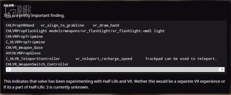 不过这没有难住爆料小哥。可能是Valve游戏开发流程的特点,使用起源引擎的游戏的源代码里经常能找到其他游戏的痕迹。如果VR半条命的开发没有停止,那么在《DOTA2》《CS:GO》的更新补丁里就能找到它。