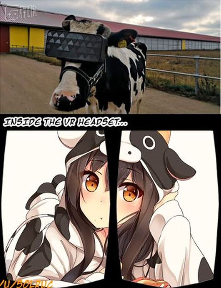 看到这则新闻后,不少网友的反映都是愤慨的:因为在不少人自己都没体验过VR的时候,牛都有私人订制款了。与此同时,被嫉妒冲昏头脑的人类也开始畅想牛VR眼镜里的真相。