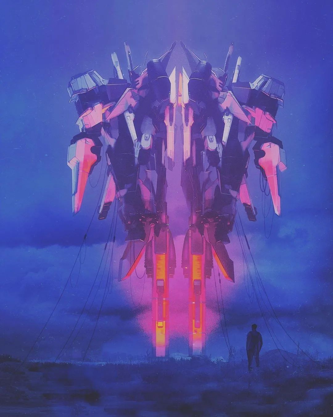他的作品中充满了未来、科幻、末世和机械美学,有种混乱古怪的吸引力。