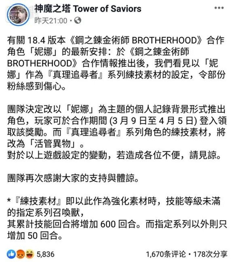一周前,手游《神魔之塔》在与《钢之炼金术师》联动过程中,一次“玩梗”引发了众怒。