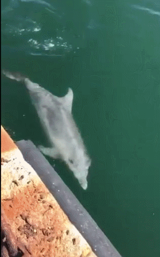 同在意大利的卡利亚里港口,不久前也是一处密集的船只汇流地,如今在疫情的影响下,船都停了航。随之而来的,则是海豚们重新出现在了港口。