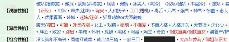 你可能会想:“啊,这么多标签呢,随便组合组合不就是个新人物”。可是适合组在一起的标签就那么多,光是想象一个天然疯的毒舌系忠犬角色,就足以迷惑到让人不知所措了。