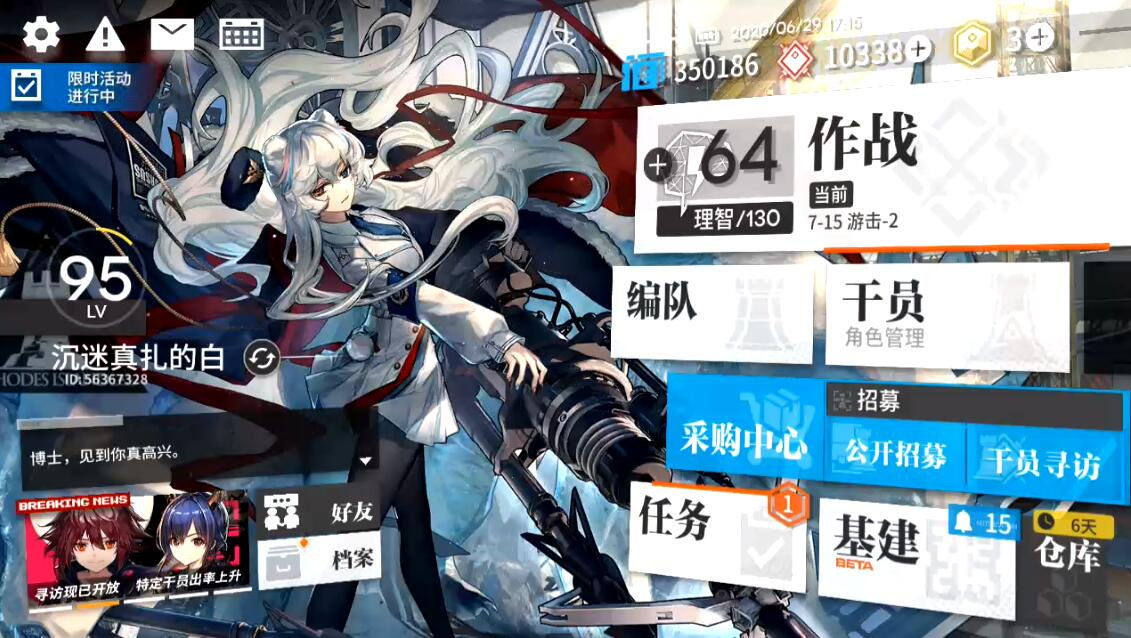 这样的进度安排当时引起了玩家们的诸多抱怨,就在月球玩家们一时之间不知该如何度过这个无聊的五一假期之时,一款UI风格出色,角色立绘精美的新手游出现了。2019年4月30日,《明日方舟》IOS服务器正式开启公测,我与当时的FGO群友们成为了开服第一天的玩家之一。