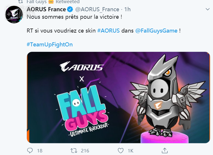 硬件厂商技嘉也借此机会向官方推荐了自己设计的炫酷糖豆人皮肤,就是不知道这样棱角分明的皮肤用在游戏中会不会造成一定的物理伤害。