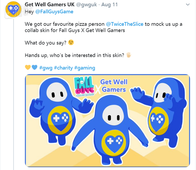 即便参与这种欢快的活动,一些机构也打算将事情变得更加有意义。英国慈善机构Get Well Gamers UK制作了自己的皮肤,希望能通过《糖豆人》来传播他们的慈善事业。