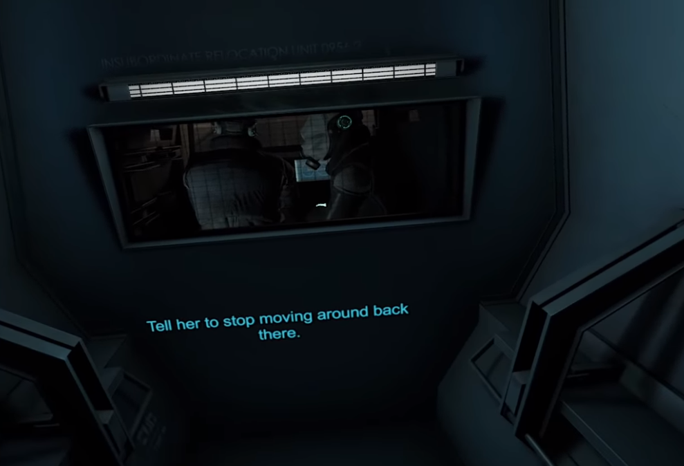在接下来的剧情演出中,Buffet会主动地挑逗敌人,触发他们的反应,这样能够打断一些演出、加速剧情的进展。比如一个无人机会上前扫描玩家,如果主动去触摸它,就可以让它跳过扫描的动画。