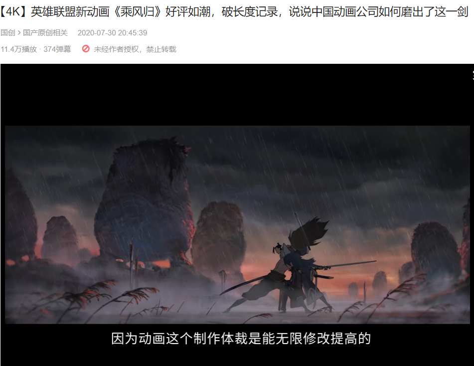 LOL玩家之中一直有“好好一个CG公司怎么去做游戏了”的说法,但到了今年,新英雄永恩的角色动画《乘风归》,其影响力已经不仅局限在玩家圈中。即便作为一个独立出来的动画短片作品,《乘风归》的制作规格和表达水准也让很多玩家和圈外的用户感到惊讶。