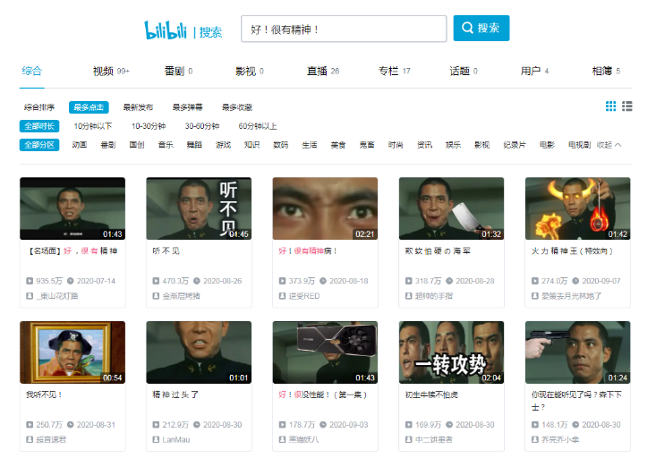 在B站搜索“很有精神”,已经能看到不少超过百万播放量的恶搞与鬼畜作品,就算不懂这句话是什么意思,身边也可能总有人毫无由头地来上一句“很有精神”或者“听不见”。