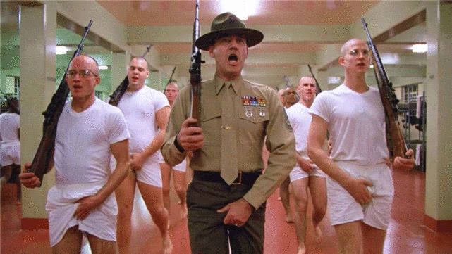 在美国的反战电影《全金属外壳》中,士官长针对新兵的仪式,是剃光新兵的头发与恶劣的人身攻击。
