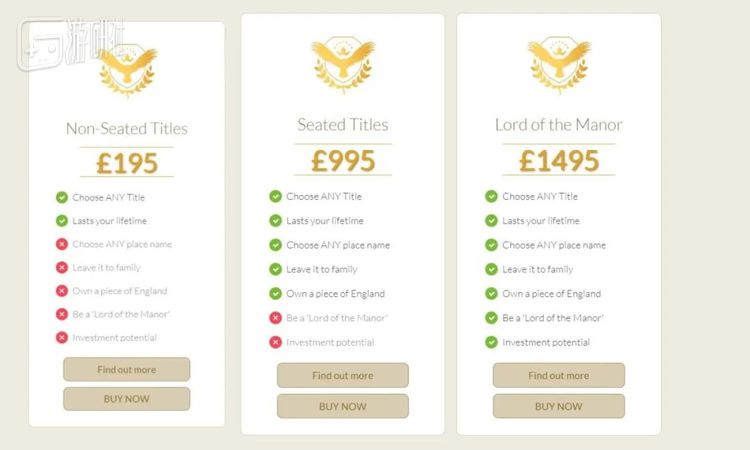这几年,网上买个爵位已经不像当年那么稀罕。可能是有这么一批中介商,当年从贵族手里买下大爵位之后,就开始干起了倒卖小头衔的生意。如果你搜索“Royal Titles for Sale”或者类似的关键词,就能找到不少出售爵位的网站。便宜谨慎一点的,只敢几十美元几十美元的卖,而厉害一点的,一开口就是成百上千。正可谓人有多大胆,地有多大产。