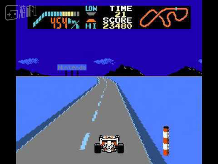 《大赛车》受到青睐,最重要的原因是对F1赛事的出色还原,而其中关键便是当时看来惊艳的画面效果。作为一款2D游戏,《大赛车》竟能模拟出3D游戏的感觉,并且还能体现出高速前进的感觉。有类似效果的《Out Run》还要等两年才能在街机房里玩到,而FC的玩家已经可以在家享受风驰电掣的感觉了。
