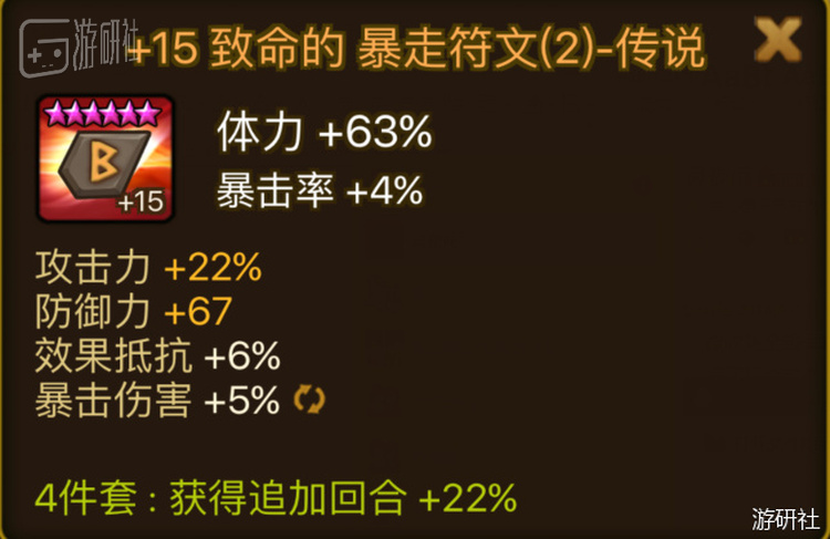 作为对比,贴一张御魂在魔灵中的原型——符文。我找了一个最高级的,可以看到一块符文就能带来巨大属性差异