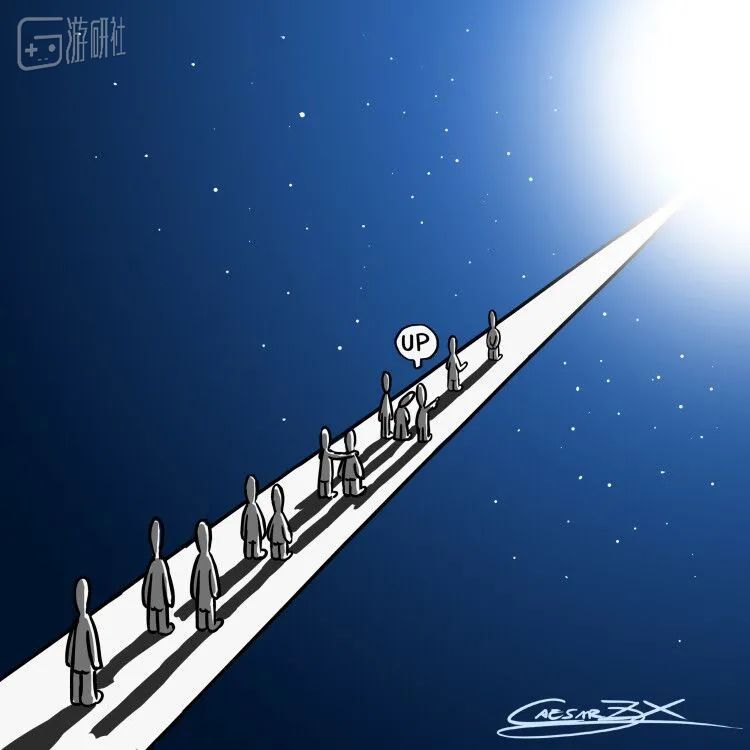 “UP主”这个词让我首先想到的其实是《飞屋环游记》,但因为曾经有一期我画过那个随气球飘上天的房子,只好忍痛改画成这条通往梦想终点的自动传送阶梯。或许有同学会以为这次的灵感来自《心灵奇旅》……其实它就是来自《心灵奇旅》。—— CaesarZX