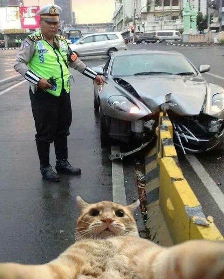 猫出现在一些意想不到的场合,有时能造成一种艺术冲突。有的猫会比记者更早出现在新闻现场,带来第一手报道。