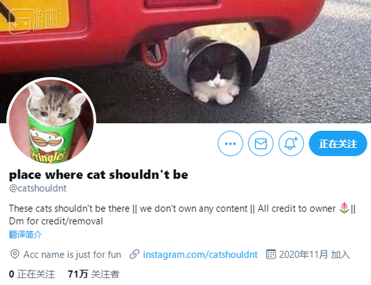 推特上有个常年火热的账号,专门发布猫图。但这里发的不是一般的猫图,而是“猫出现在各种不应该出现的地方”。