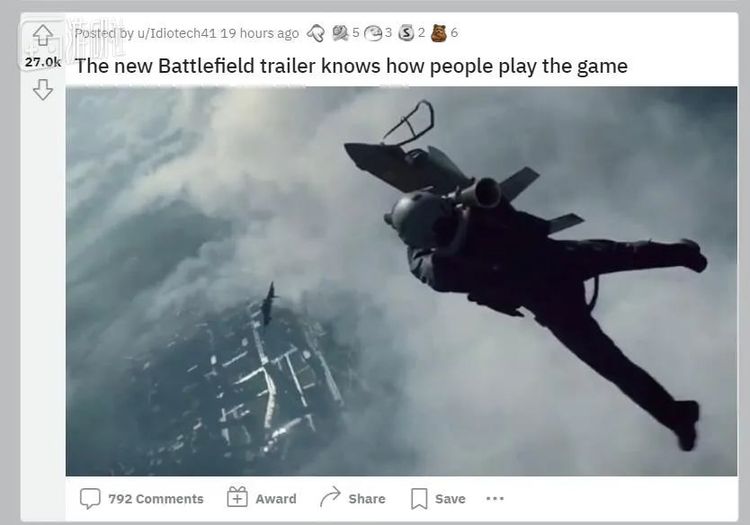 只弹驾驶员不弹椅子的神奇弹射系统,弹射后还能飘回飞机的逆天飞行员,以及不知道藏在哪个四次元口袋里的火箭筒,单这一个片段,槽点便多到数不过来。可是把这个片段递给《战地》老玩家看,他们怕是早就欢呼雀跃起来,甚至兴奋到痛哭流涕。