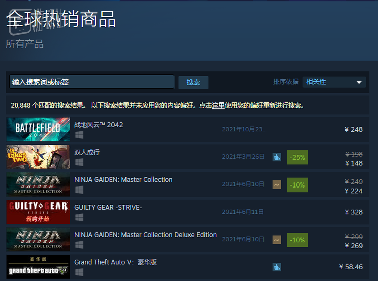 《战地2042》开放预购页面不到24小时,便登上了Steam全球热销商品排行榜的第一位。