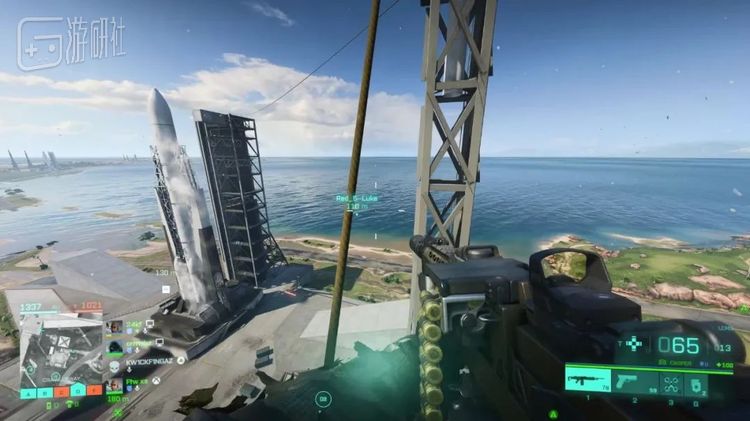 然而,每被网络和AI折磨一段时间,我还是能得到十几分钟相对顺畅完整的体验。这十几分钟的感觉可太对味了。尽管地图比之前大了不少,但是由于玩家变多了,不管在什么时候,什么地方,总有事情发生。天上直升机和战斗机你来我往,地上的脚男一波又一波互相冲锋;刚刚才费劲炸掉敌人的坦克,又跑出来一辆防空炮突突突扫倒一片;暴风雨来了,海上刮起了龙卷风;面对据点久攻不下,就快要抓狂的时候,远处的火箭突然点火升空……这份混乱的感觉,就像一个枪林弹雨的游乐园。在《战地2》《战地3》里的那种欢乐,在《战地2042》里面都可以加料加倍地重温一遍。