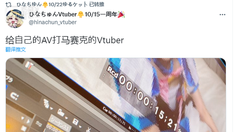 在10月8日举办的那场史无前例的AV直播的前两天,这位AVtuber晒出了给自己的AV打码的过程,根据事后的相关言论来看,比赛使用的成人影片是得到了本人许可的。虽然这位主角没有直接参与比赛,但她的身影还是出现在比赛的各个角落。