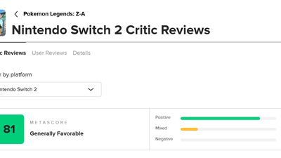 任天堂《宝可梦传说 Z-A》媒体评分解禁,目前收录 44 家媒体的 MC 上评分为 81 分。作为参考,之前几作分别是《宝可梦 朱/紫》72分、《宝可梦传说 阿尔宙斯》83分、《宝可梦 剑/盾》80分。